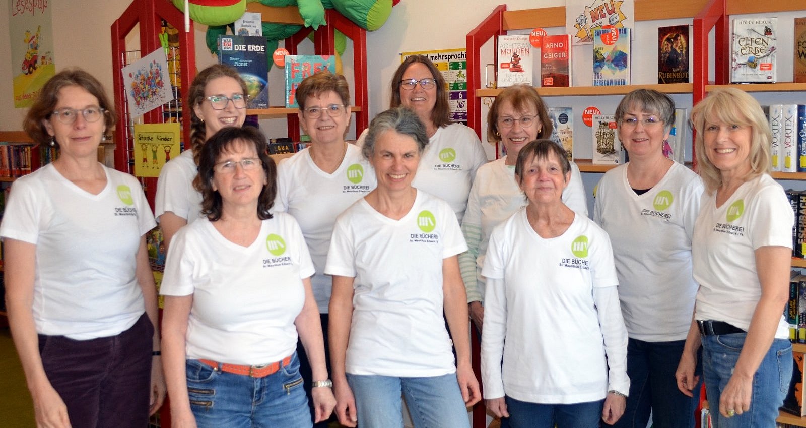 Unser Bücherei-Team aus 14 Mitarbeiter-innen arbeitet ausschließlich ehrenamtlich.